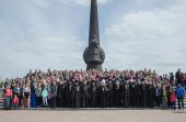 Перед возложением венка и цветов была возглашена «Вечная память» «вождям и воинам, на поле брани жизнь свою положившим, от ран и глада скончавшимся, в пленении и горьких работах невинно умученным и убиенным и всем Победы ради потрудившимся». Совершив заупокойную молитву духовенство пропело пасхальные тропари, после чего митрополит Александр обратился к собравшимся со словами поздравления с Днем Великой Победы.