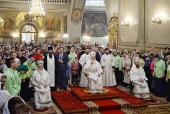 8 июня, в канун праздника Вознесения Господня, Святейший Патриарх Московский и всея Руси Кирилл совершил всенощное бдение в кафедральном соборном Храме Христа Спасителя г. Москвы.