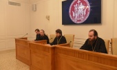 6 июня в Общецерковной аспирантуре и докторантуре имени равноапостольных Кирилла и Мефодия под председательством митрополита Волоколамского Илариона состоялось заседание комиссии Межсоборного присутствия Русской Православной Церкви по вопросам богословия.