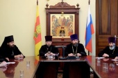 В Тверском епархиальном управлении состоялась встреча председателя Синодального отдела по взаимодействию с Вооруженными силами и правоохранительными органами протоиерея Сергия Привалова с военным духовенством Тверской митрополии.