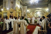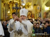 18 января, в канун праздника Крещения Господня, Святейший Патриарх Московский и всея Руси Кирилл совершил всенощное бдение в Богоявленском кафедральном соборе г. Москвы.