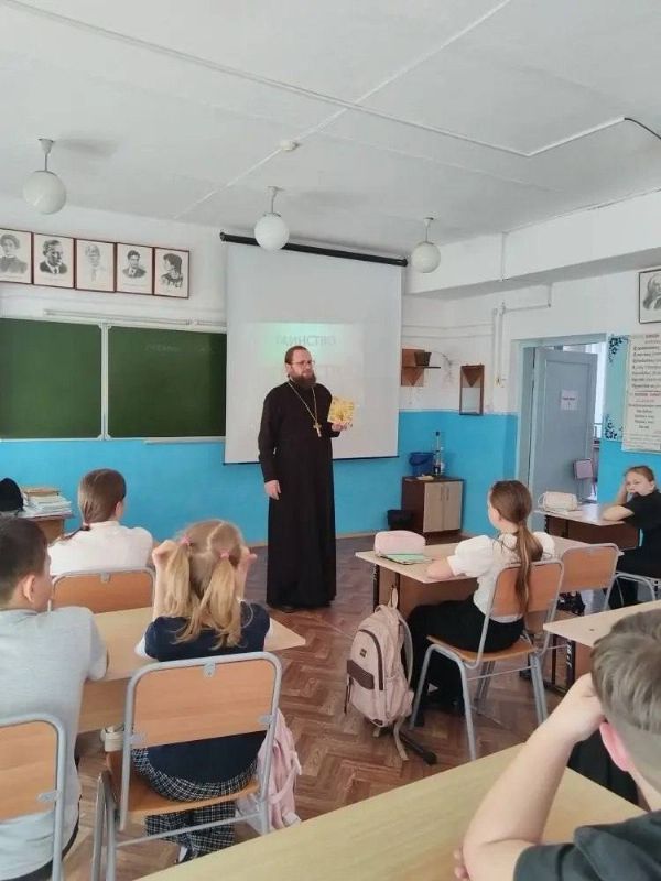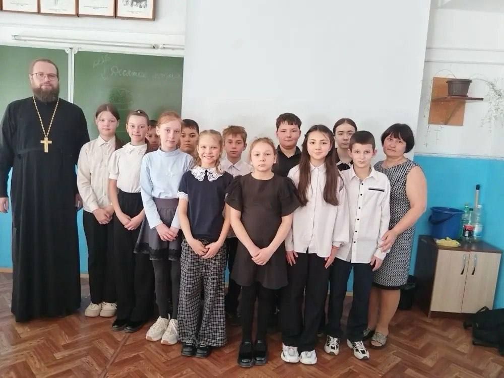 10 марта в рамках празднования Дня православной книги настоятель храма Покрова Божьей Матери п. Покровка протоиерей Димитрий Федорин провел встречу с учениками 4-го класса МОБУ «Чернятинская основная общеобразовательная школа Октябрьского муниципального округа».