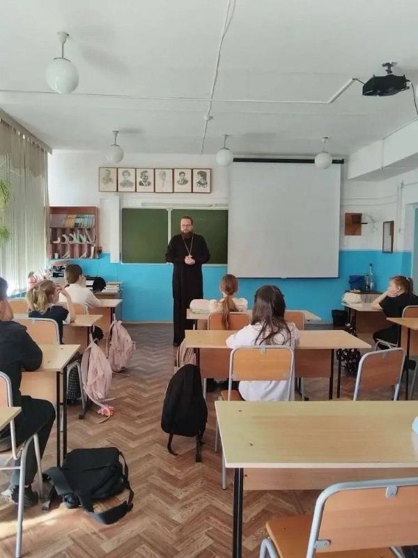 Батюшка уже хорошо знаком с ребятами: в прошлом месяце дети посетили Покровский храм с экскурсией. Данная встреча стала продолжением знакомства школьников с православной верой.