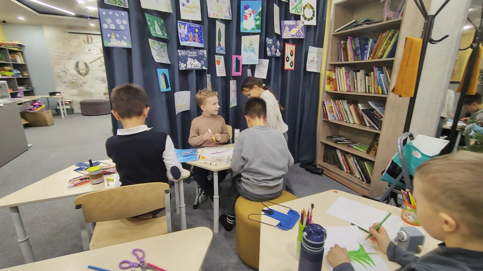 Учащиеся в возрасте от 6 до 12 лет с большим увлечением рисовали рождественские рисунки и открытки. Но эти открытки остались не в портфелях, а отправились в далёкие города.