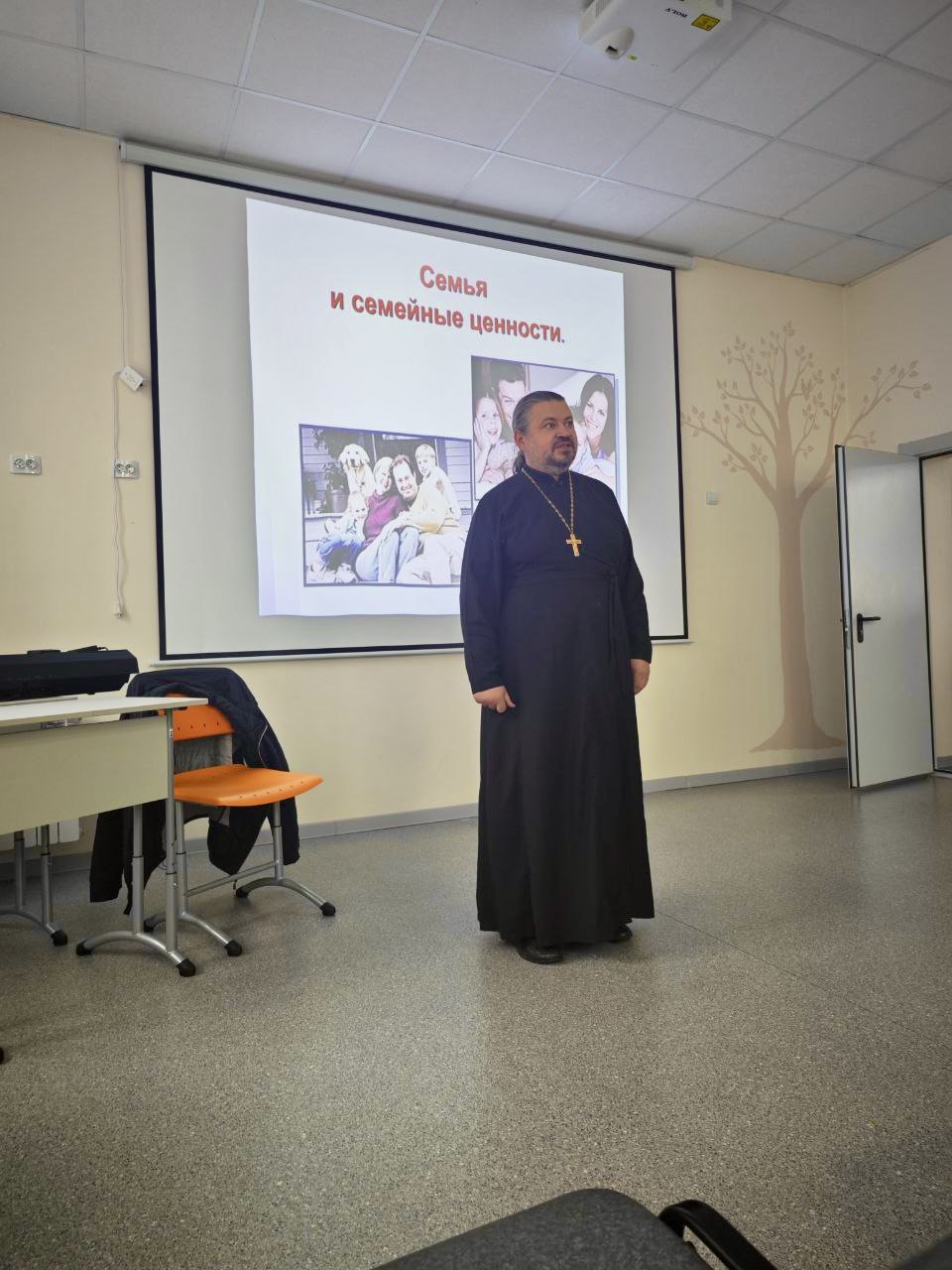 Священник провел беседу о семейных ценностях на школьном родительском собрании.
