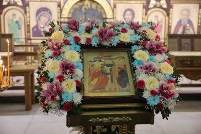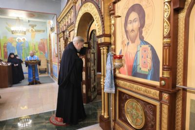 По заамвонной молитве епископ Николай, в сослужении священства, возглавил праздничное славление, после владыка Николай обратился к присутствующим с архиерейским словом.