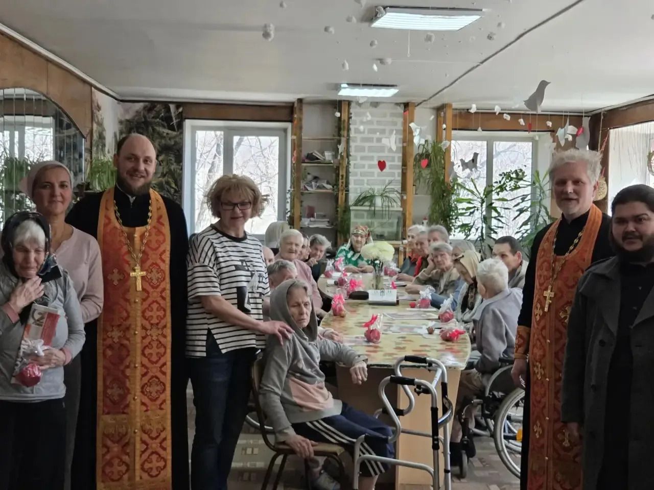 В стенах пансионата был совершён пасхальный молебен. Радостное пение тропаря «Христос Воскресе!» наполнило зал особой атмосферой. Священнослужители обратились к собравшимся со словом проповеди, в которой рассказали о духовном смысле Воскресения Господня, победе жизни над смертью и значении праздника Пасхи для каждого христианина.