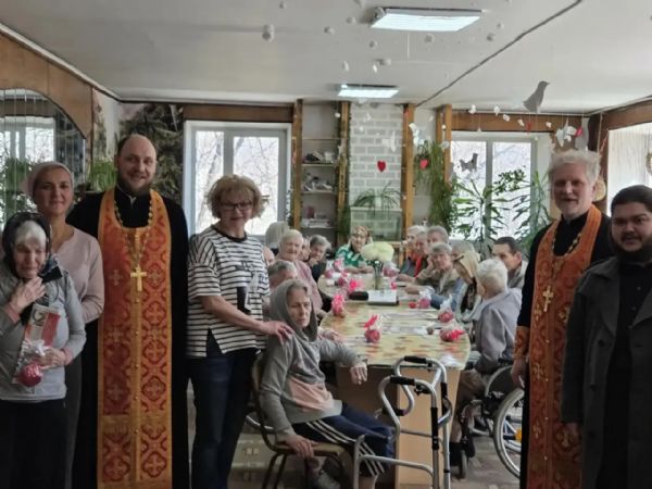 13 апреля состоялась миссионерская поездка прихода храма Богоявления г. Артема в пансионат «Наши Гости». Настоятель храма иерей Дионисий Ищенко и иерей Вадим Родин вместе с сёстрами милосердия, певчими и помощником настоятеля посетили подопечных учреждения, чтобы разделить с ними праздник Светлого Христова Воскресения.