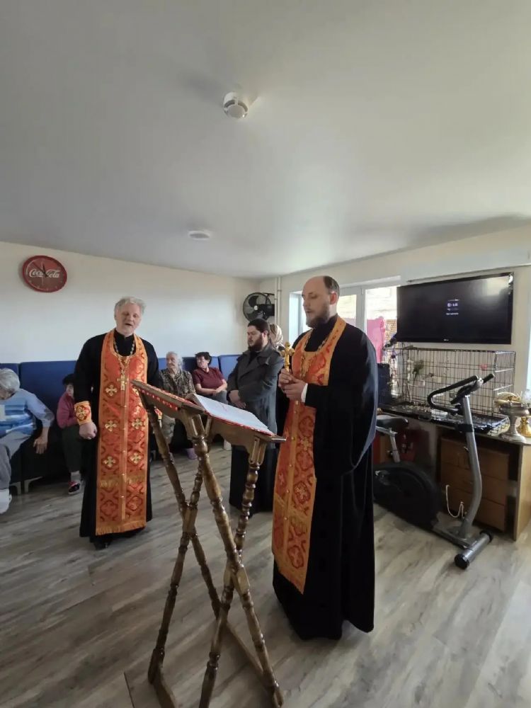 Во время встречи священнослужители совершили пасхальный молебен, рассказали присутствующим о Светлом Христовом Воскресении и поздравили всех с великим праздником Пасхи. Подопечным пансионата были вручены пасхальные подарки: кулич, яйцо, иконка, газета «Фома» и буклет с информацией о празднике.