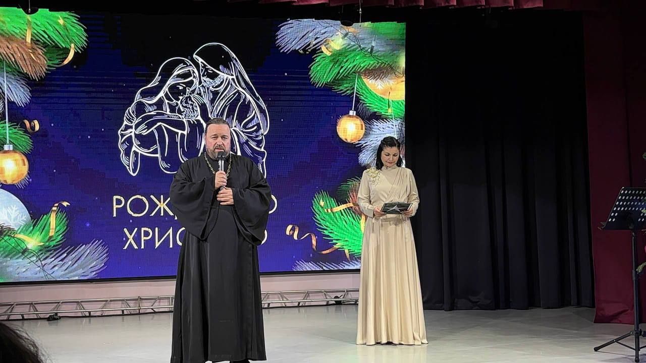 Открыл концерт протоиерей Лев Калачиков, настоятель Успенского храма. Батюшка поздравил собравшихся с праздником Рождества Христова, а также призывал совершать добрые поступки и всегда уповать на Бога.