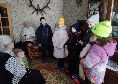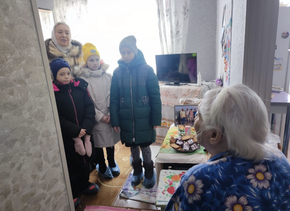 Тех, кто по немощи не может посетить храм в эти радостные дни. С колядками и подарками дети и педагоги пришли поделиться Рождественской радостью, пожелали крепкого здоровья, Божией помощи, передали поклон от всего Прихода храма Андрея Первозванного.