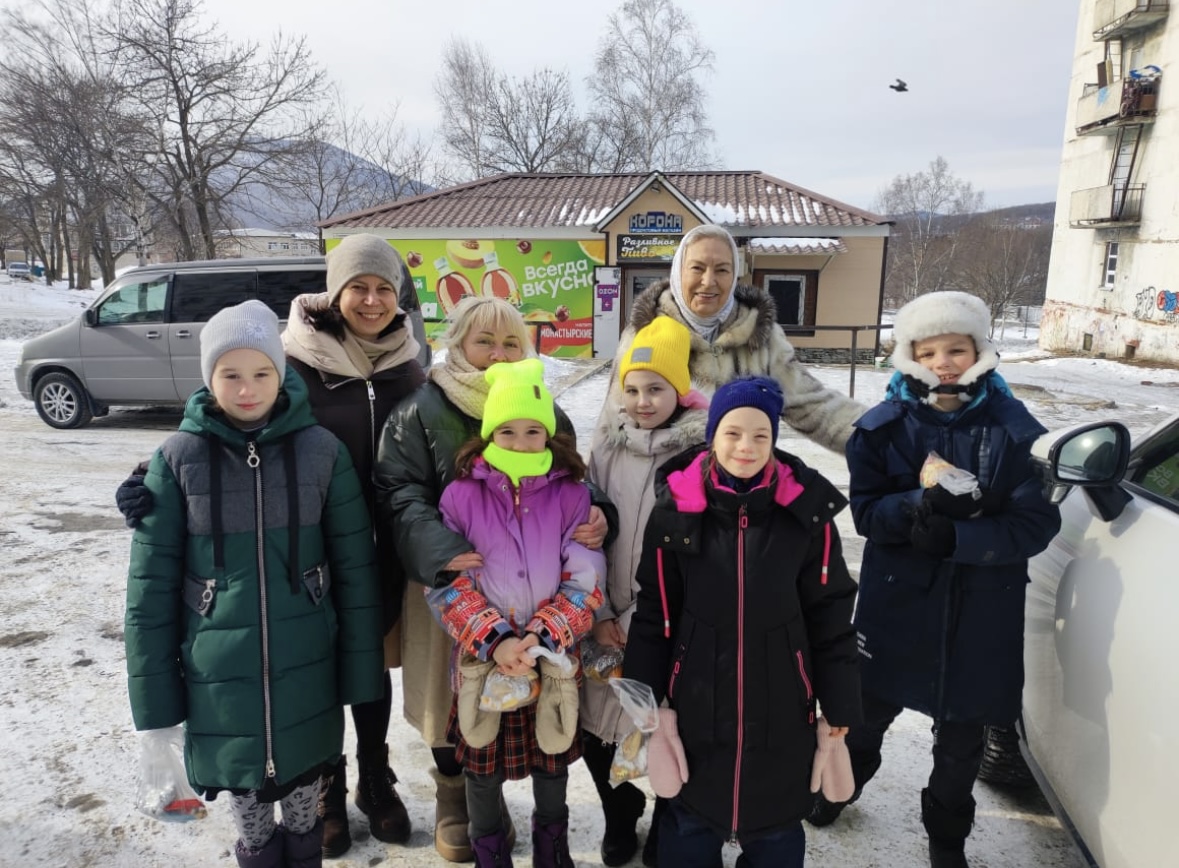 Воспитанники приходской воскресной школы в г. Фокино поздравили с праздником Богоявления пожилых прихожан .