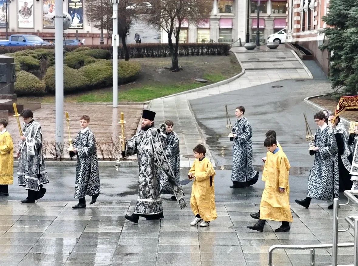 Вечером 10 апреля, в канун Великой Субботы, митрополит Владивостокский и Приморский Павел возглавил в Спасо-Преображенском кафедральном соборе г. Владивостока утреню с чином погребения плащаницы Христа Спасителя.