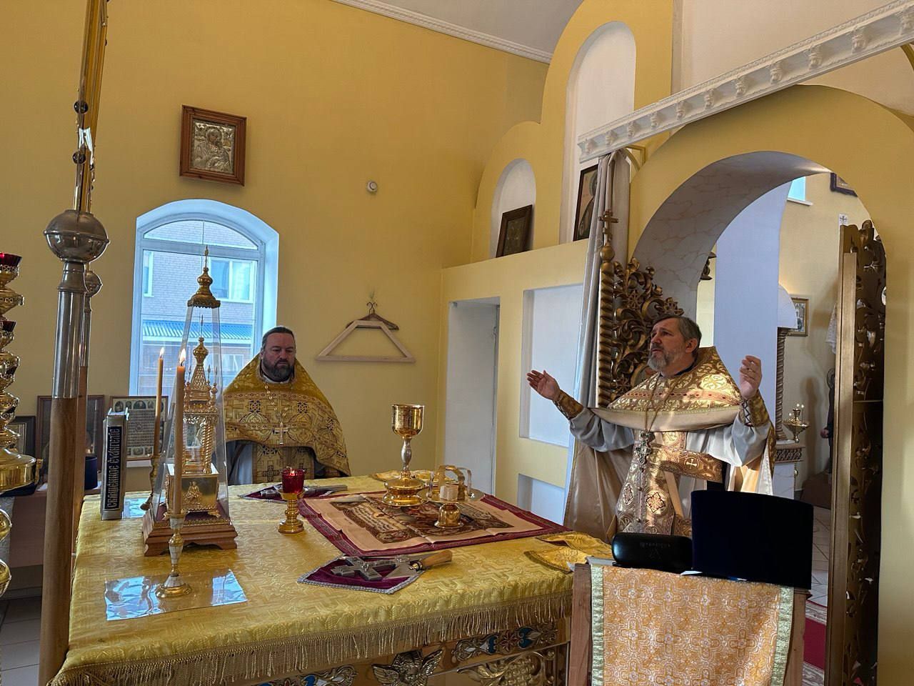 В храме в честь святых благоверных князей Бориса и Глеба протоиерей Андрей Метелёв в сослужении новоназначенного настоятеля храма иерея Алексия Синенко совершил Божественную литургию