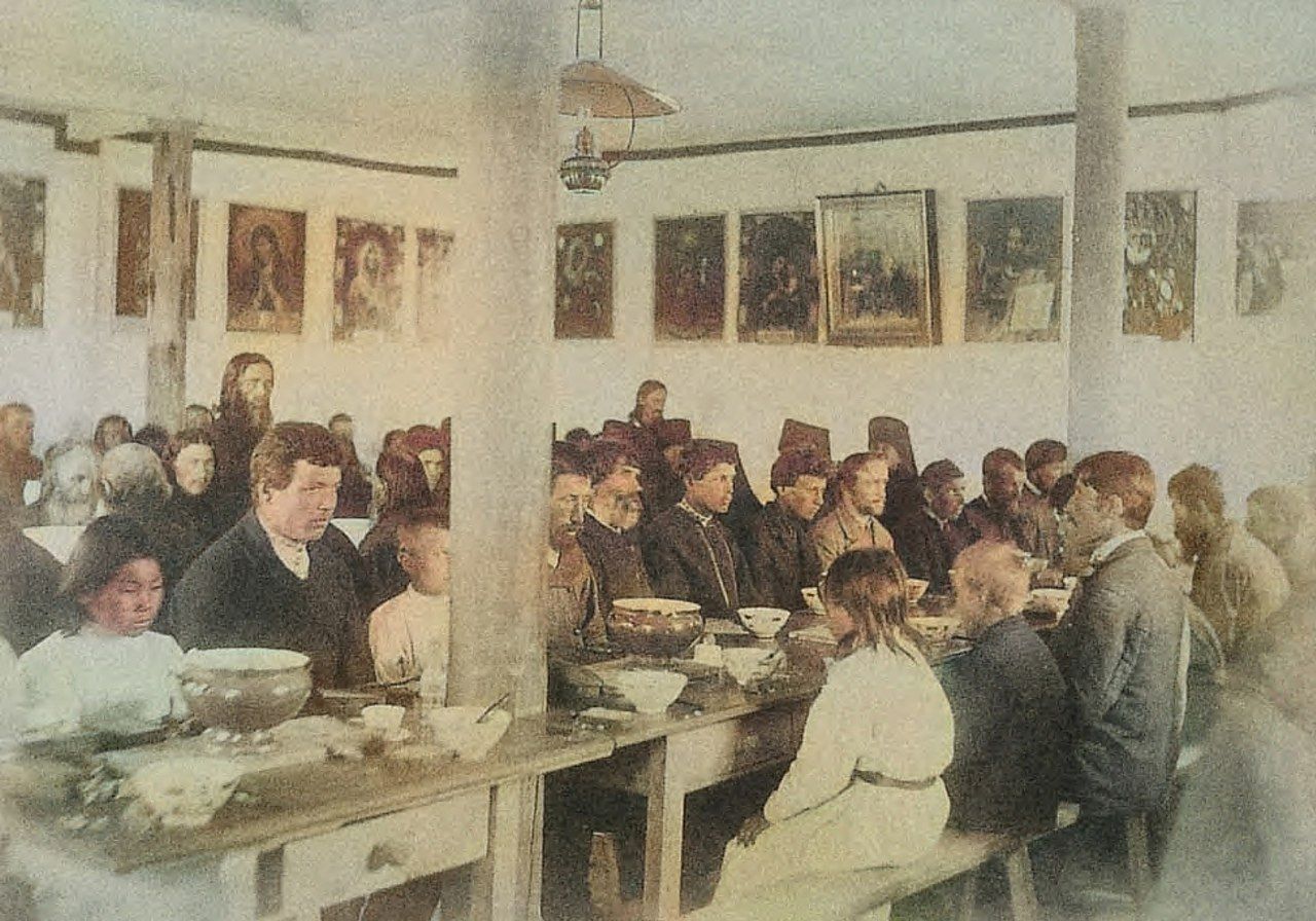 31-го мая. Съ 6 ч. вечера и до 11 1/2 ночи продолжалось торжественное всенощное бдѣніе. Пѣли на два хора монахи и курсисты. Стройно-умилительное пѣніе монаховъ по валаамскому напѣву съ канонархомъ* производило на всѣхъ чрезвычайно сильное впечатлѣніе. Вслѣдствіе множества собравшихся изъ окрестныхъ селеній богомольцевъ литія была совершена Преосвященнымъ Владыкой на открытом воздухѣ при послѣднихъ лучахъ заходящаго солнца. На слѣдующій день послѣ Литургіи курсистамъ былъ предложенъ обѣдъ въ общей трапезной вмѣстѣ съ братіей. Во время обѣда очередной изъ братіи читалъ положенное изъ Четьі-Минеи по валаамскому обычаю речитативомъ. Къ вечеру курсисты, принявши благословеніе Владыки, пѣшкомъ отправились въ обратный путь на ст. Шмакову и, переночевавши въ оставленномъ для нихъ вагонѣ, на завтра благополучно прибыли обратно, въ Никольскъ; вся эта поѣздка, какъ видно изъ описаній ея, сдѣланныхъ курсистами, произвела на нихъ весьма благопріятное и отрадное впечатлѣніе.