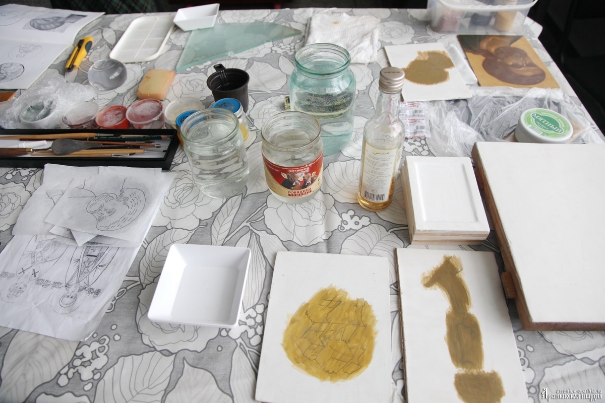 – Он добавляет долговечности краскам, не даёт им выцветать, жухнуть, – пояснила инокиня. – Благодаря ему краски не только сохраняют свою цветность, но и эмоционально воздействуют на человека.