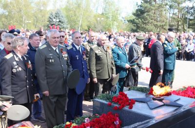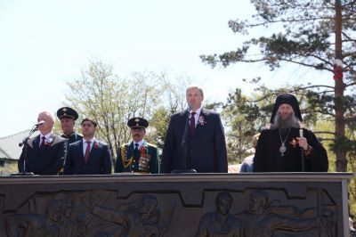 После минуты молчания и возложения живых цветов духовенство совершило заупокойную литию, за которой была пропета «вечная память» всем погибшим величайшей в истории человечества войны. Владыка в своём слове напомнил собравшимся о том, что мы одержали окончательную победу в Пасхальные дни, в день празднования памяти великомученика Георгия Победоносца. Это далось нашему народу небывало высокой ценой, и сегодня очень важно возрождать наши традиции, возвращаться к истокам и оберегать наши святыни. Россия ранее называлась святой Русью, наследниками которой мы все сегодня являемся. Остатки, крупицы этой Руси и ее святости остались в нашем народе и наше призвание от Бога – защищать не только нашу Родину, но и весь мир от врагов и супостатов – видимых и невидимых фашистов.