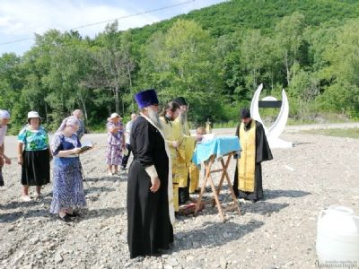 По дороге в Арсеньев на повороте в с.Шумное у разрушенного моста Владыка освятил Поклонный Крест. Архиерею сослужили секретарь епархии протоиерей Александр Сулема, иерей Виктор Бронников, иерей Андрей Кузнецов и диакон Кирилл Зиновьев.