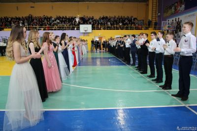 В спортивном зале СШ «Полёт» собрались учащиеся всех школ города и представители молодёжной общественной организации «Синяя птица». Среди гостей – врио главы АГО Владимир Пивень и председатель Думы города Анатолий Щербаков. На трибунах – взволнованные родители школьников. Раздаются звуки полонеза – танца-открытия. Бал начался…