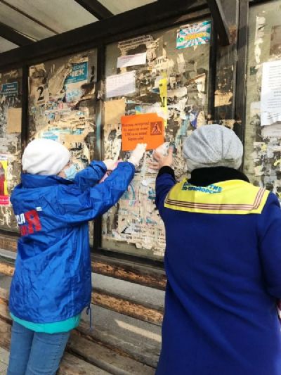 На автобусных остановках были расклеены листовки с призывами: «Пешеход, на переход!», «Человеческая жизнь — это не автозапчасть».