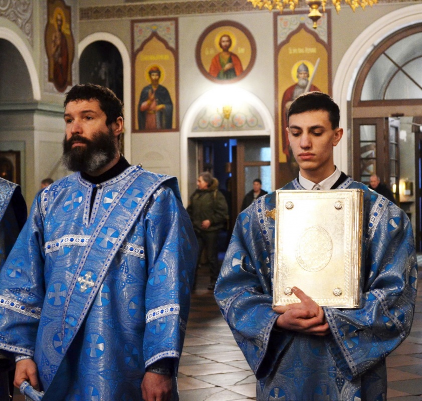 В богослужении приняли участие воспитанники школы-интерната при Николо-Шартомском монастыре и воспитанницы православной школы имени свт. Тихона Задонского. Молодые люди были иподиаконами, а девочки пели на клиросе.