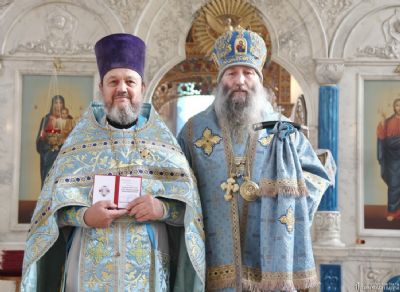 Во время Богослужения Владыка наградил иеромонаха Варсонофия (Рыжова) наперсным крестом, а иеромонаха Митрофана (Могутнова) и иерея Димитрия Овчинникова – правом ношения набедренника.