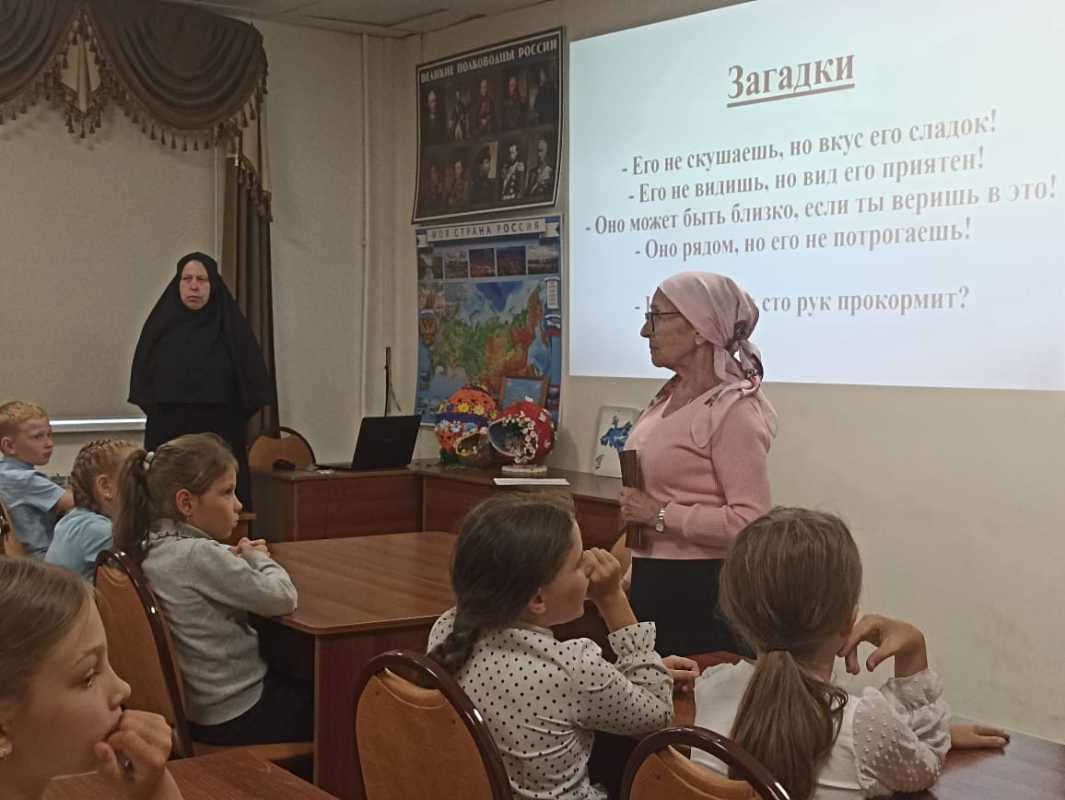 На мероприятии инокиня Мария (Воробьёва), руководитель грантовых проектов и Ирина Геннадьевна Бердникова, руководитель ОРОиК, побеседовали с ребятами о значении дружбы в жизни человека, отгадывали загадки и объясняли пословицы о дружбе. Было приятно слушать, что дружба для детей – это самое дорогое и важное в их жизни.