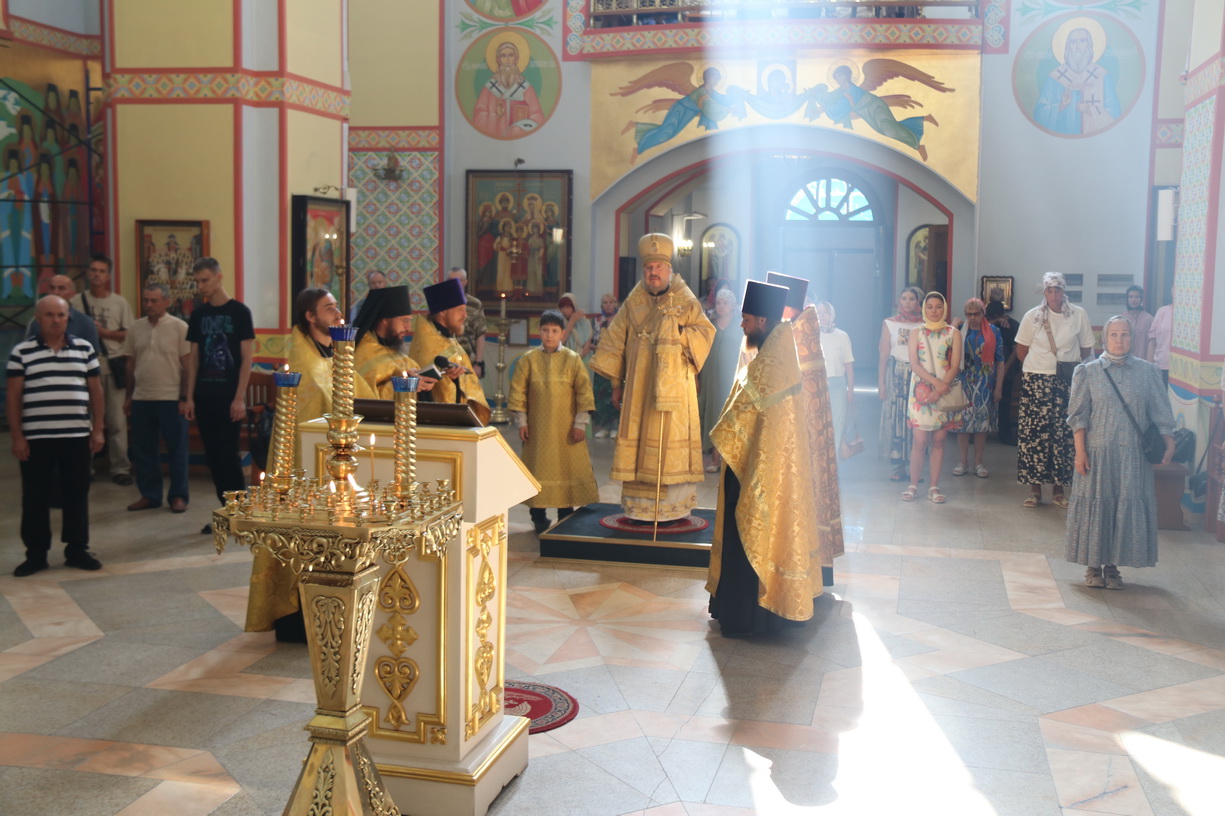 Его Преосвященству сослужили: иерей Виталий Шаркеев; иерей Андрей Попов; иерей Иоанн Гречишников.