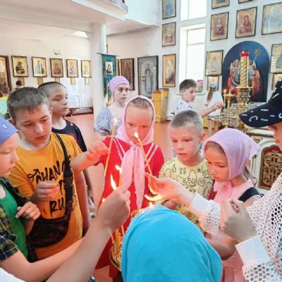 У детей была возможность поставить свечи о здравии родных и близких. После посещения храма дети побывали в Воскресной школе Прихода, где помощники настоятеля провели с детьми беседы, мастер-классы по изготовлению цветов Ромашек к празднику «День любви, семьи и верности».