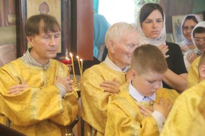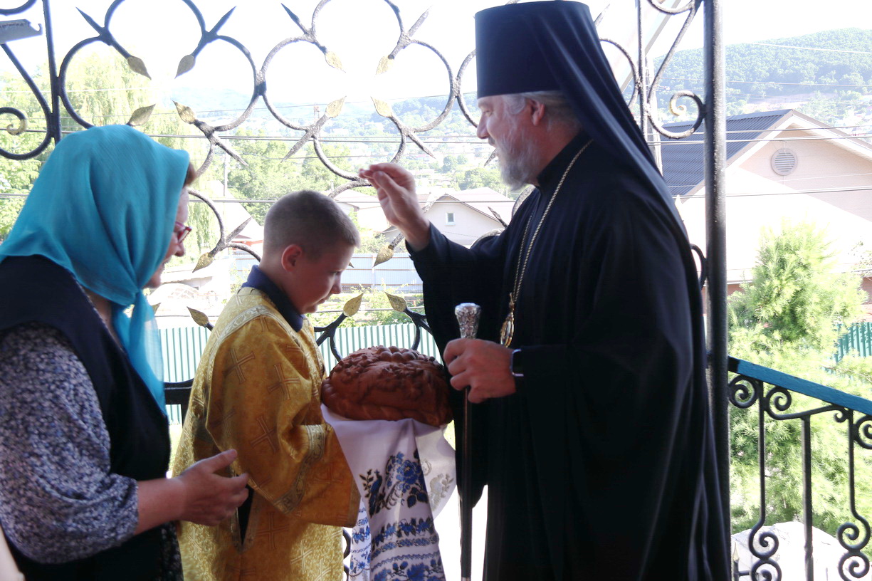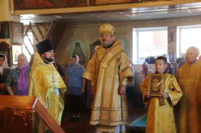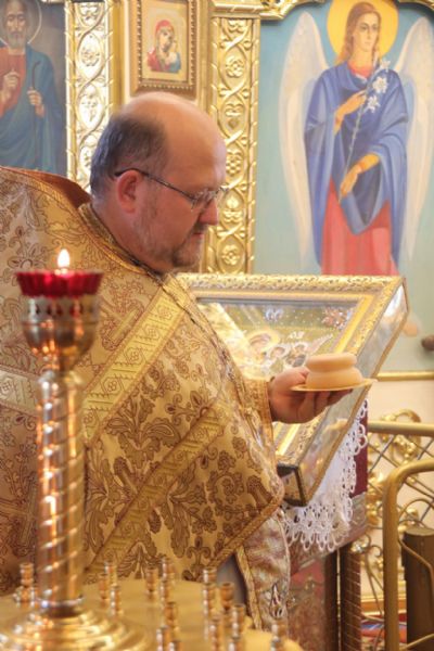 По окончании Литургии было совершено славление пророку, после Владыка обратился к молящимся с архипастырским словом, затем Владыка поздравил настоятеля храма о.Иоанна с днем его тезоимнитств, пожелал ему многие и благая лети и вручил ему богослужебную просфору. Также настоятеля храма поздравили воспитанники Воскресной школы Рождественского прихода.