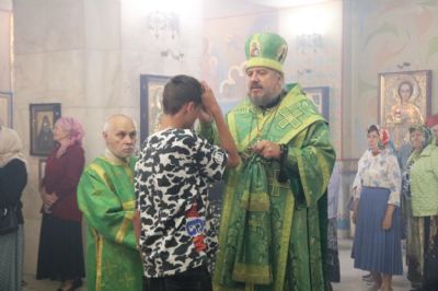 На утрене, после чтения Евангелия, Владыка совершил помазание елеем всех верующих собравщихся на богослужение.
