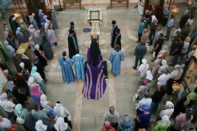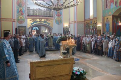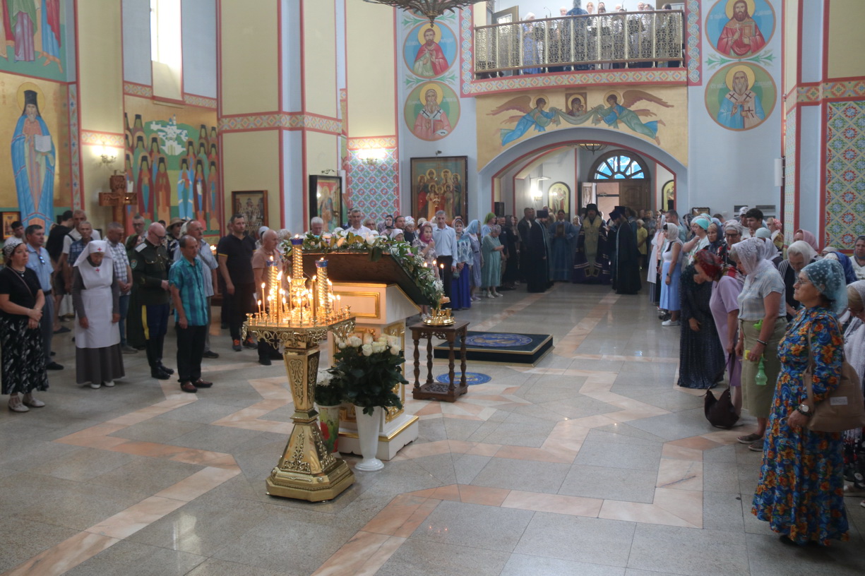 После икона была торжественна внесена в Кафедральный собор, более 200 верующих приложились к святыням и помазались освященным елеем.