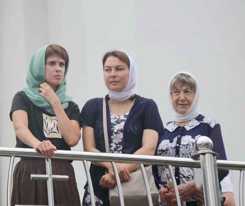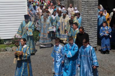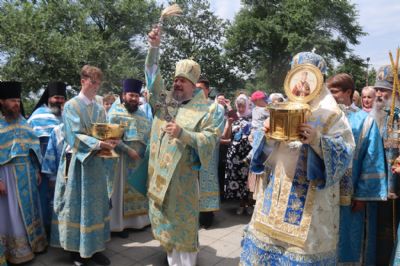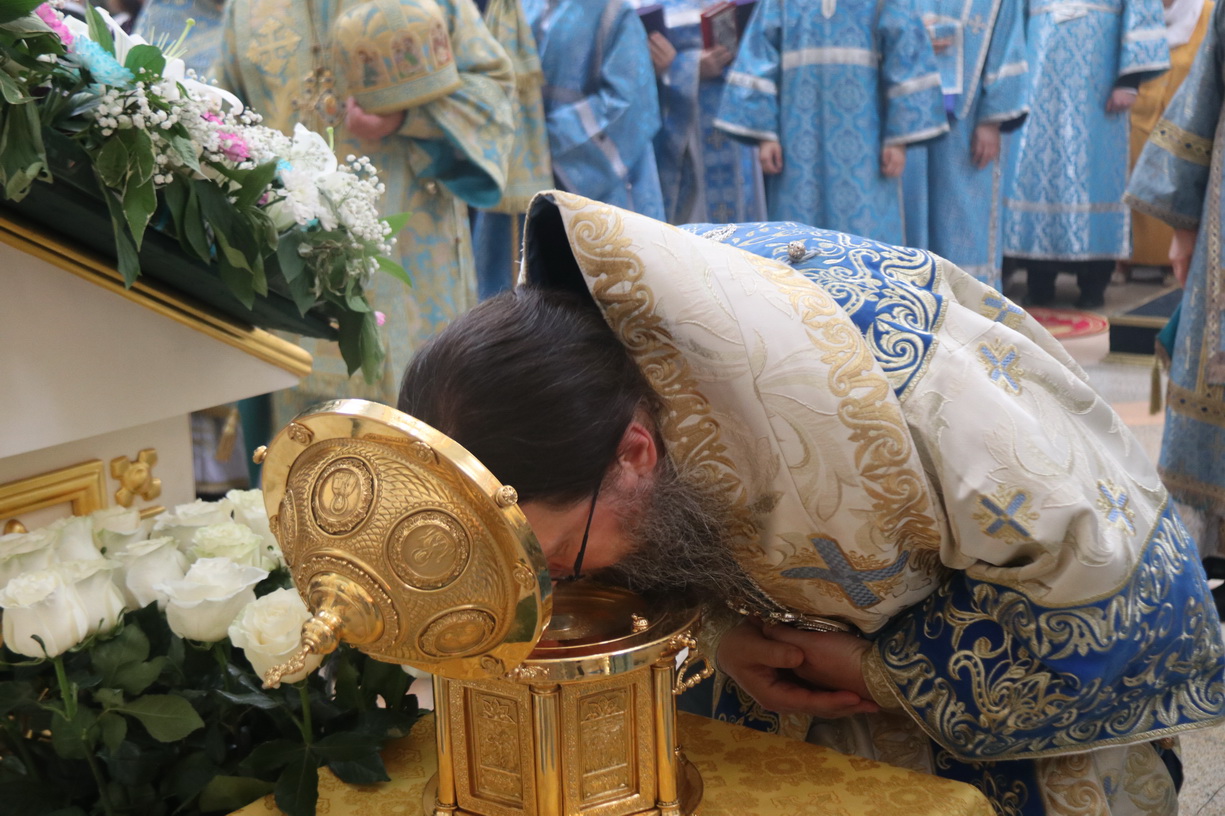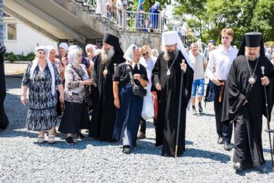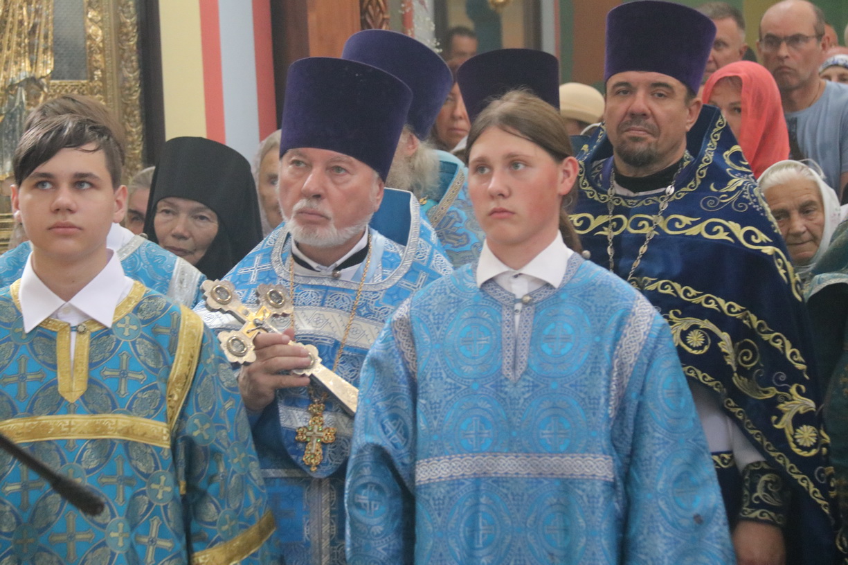 После заамвонной молитвы архипастыри, духовенство и верующие совершили с чтимой иконой крестный ход вокруг храма, было прочитано Богородичное зачало из Евангелия, а верующих окропляли святой водой.