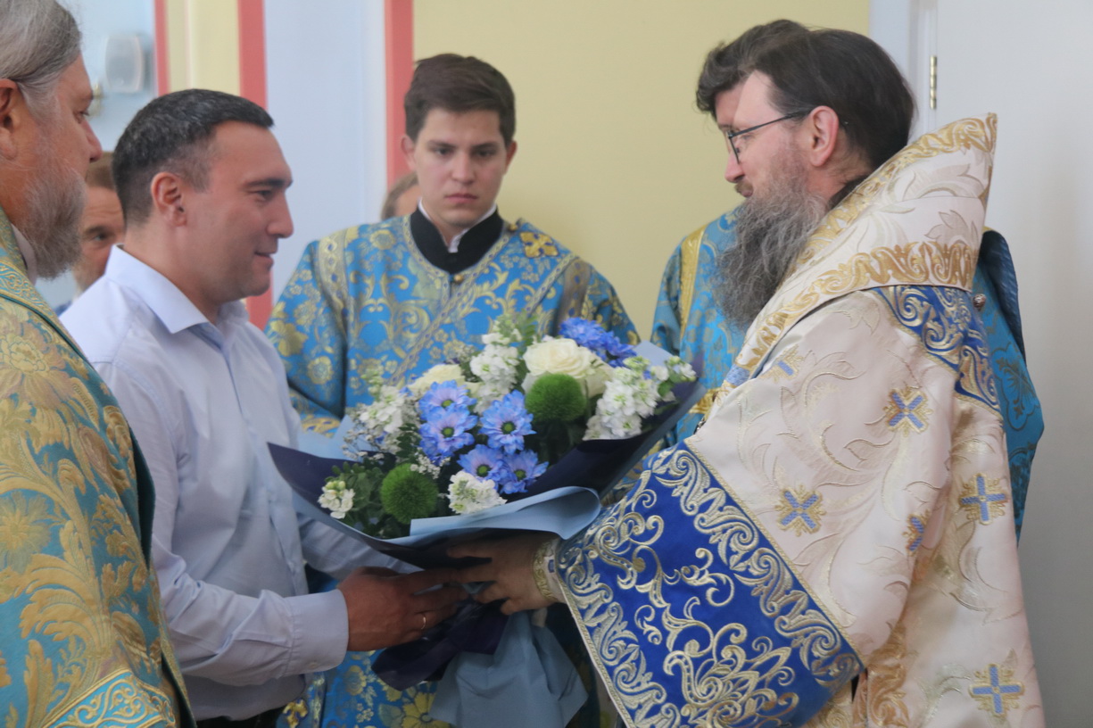 В алтаре храма, с праздником митрополита Павла поздравил глава Находкинсгого городского округа Тимур Владимирович Магинский и преподнес Владыке букет цветов.