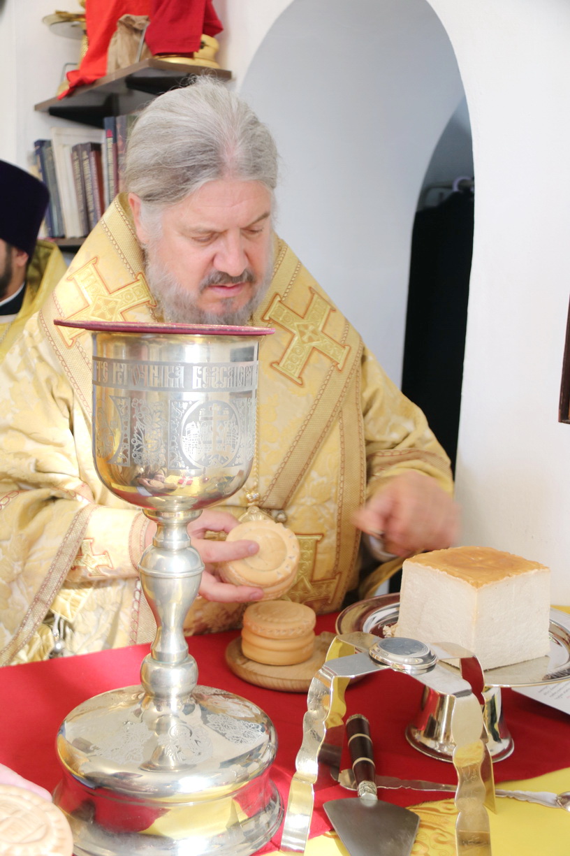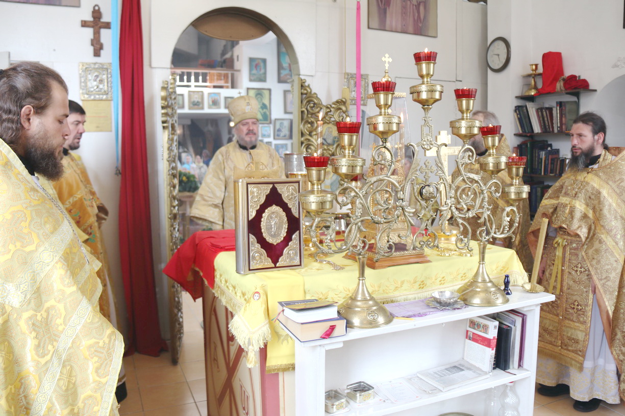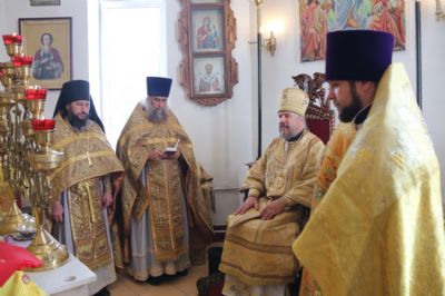Его Преосвященству сослужили: протоиерей Владимир Серебренников, настоятель храма в честь святого равноапостольного князя Владимира п. Ливадия; протоиерей Андрей Гречишников, настоятель храма в честь Успения Божией Матери с.Владимиро-Александровское ;иерей Иоанн Кпитаюк, натоятель храма Рождества Христова г. Находки; иеромонах Ермоген (Крещенко); иерей Иоанн и иерей Илия Гречишниковы.