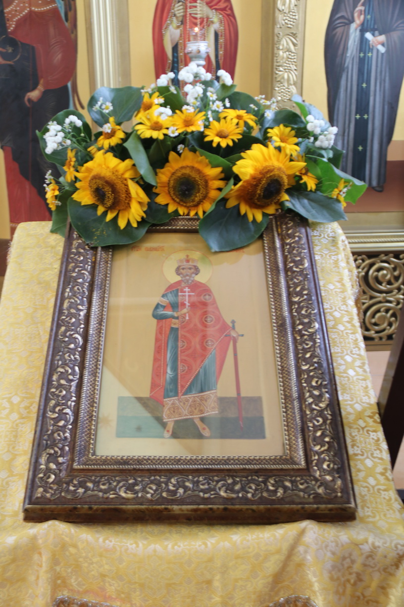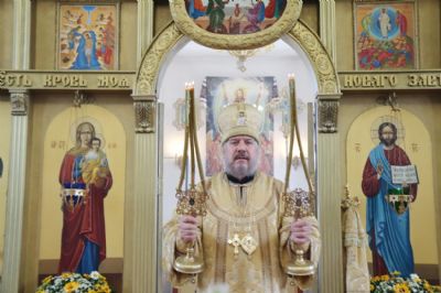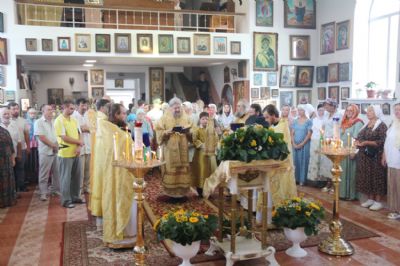 По окончании Божественной литургии епископ Николай, в сослужении духовенства, возглавил молебен, славление и крестный ход святому равноапостольному великому князю Владимиру. После молебна Владыка зачитал и обратился к настоятелю храма, протоиерею Владимиру Серебренникову и прихожанам с приветственным словом, в котором поздравил всех с днем памяти равноапостольного князя Владимира и престольным праздником храма.