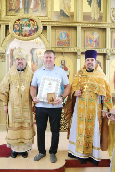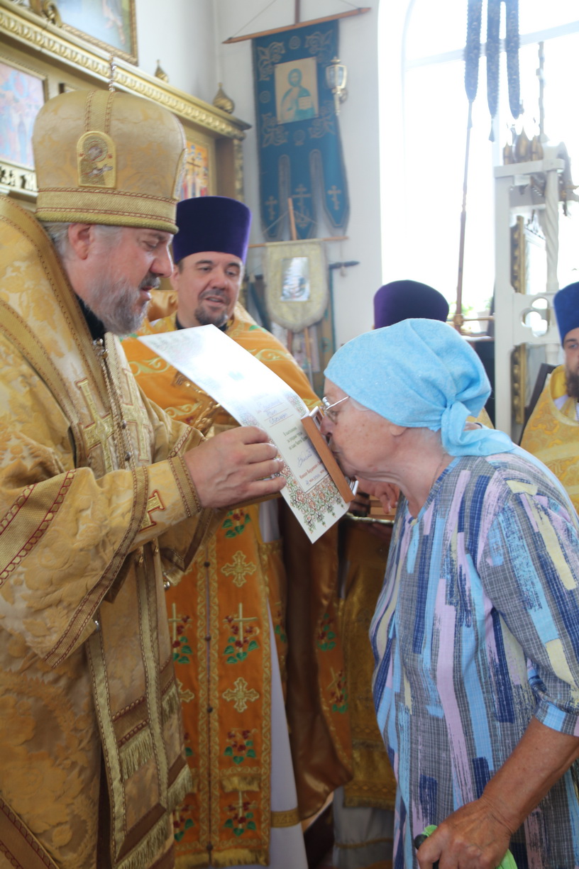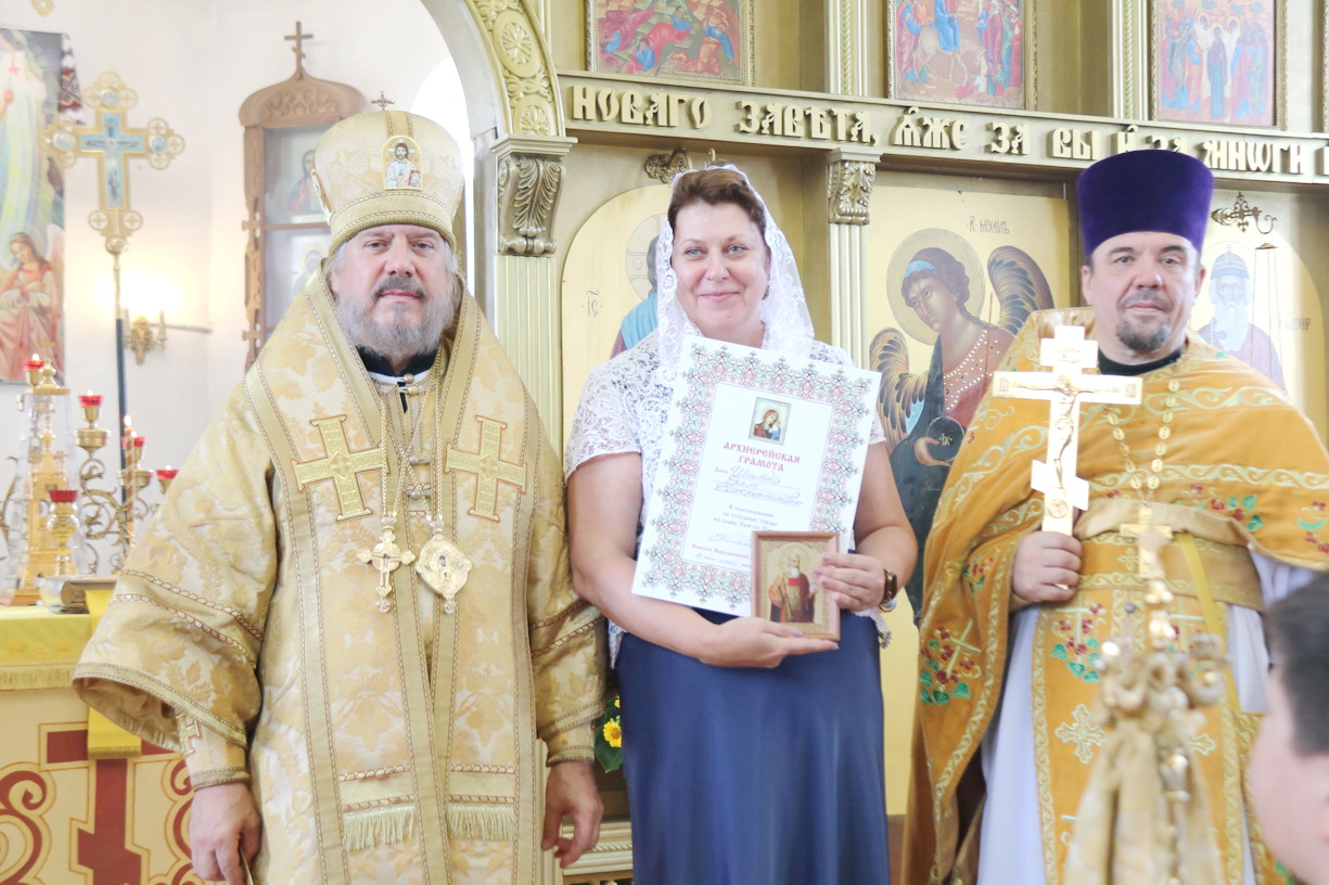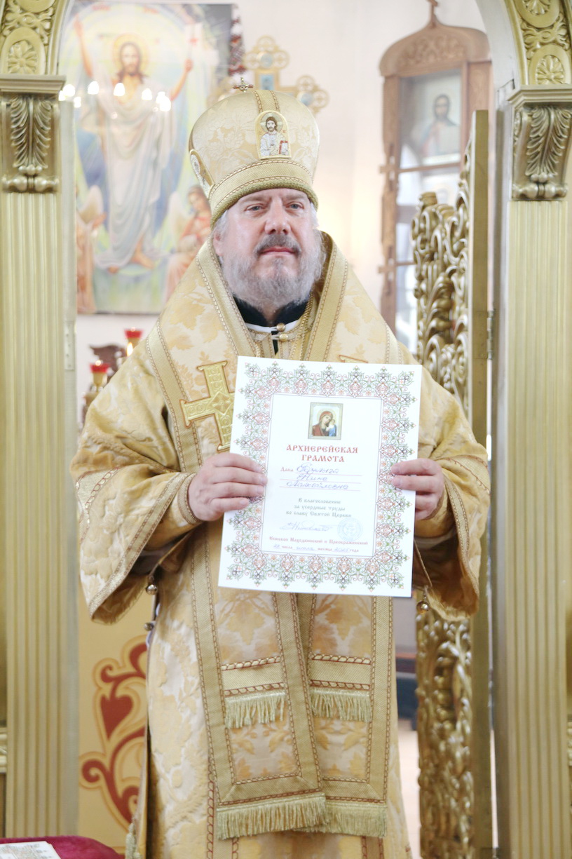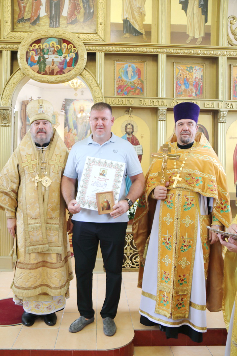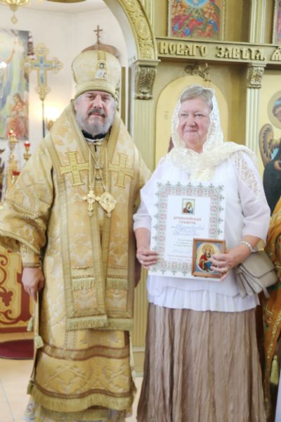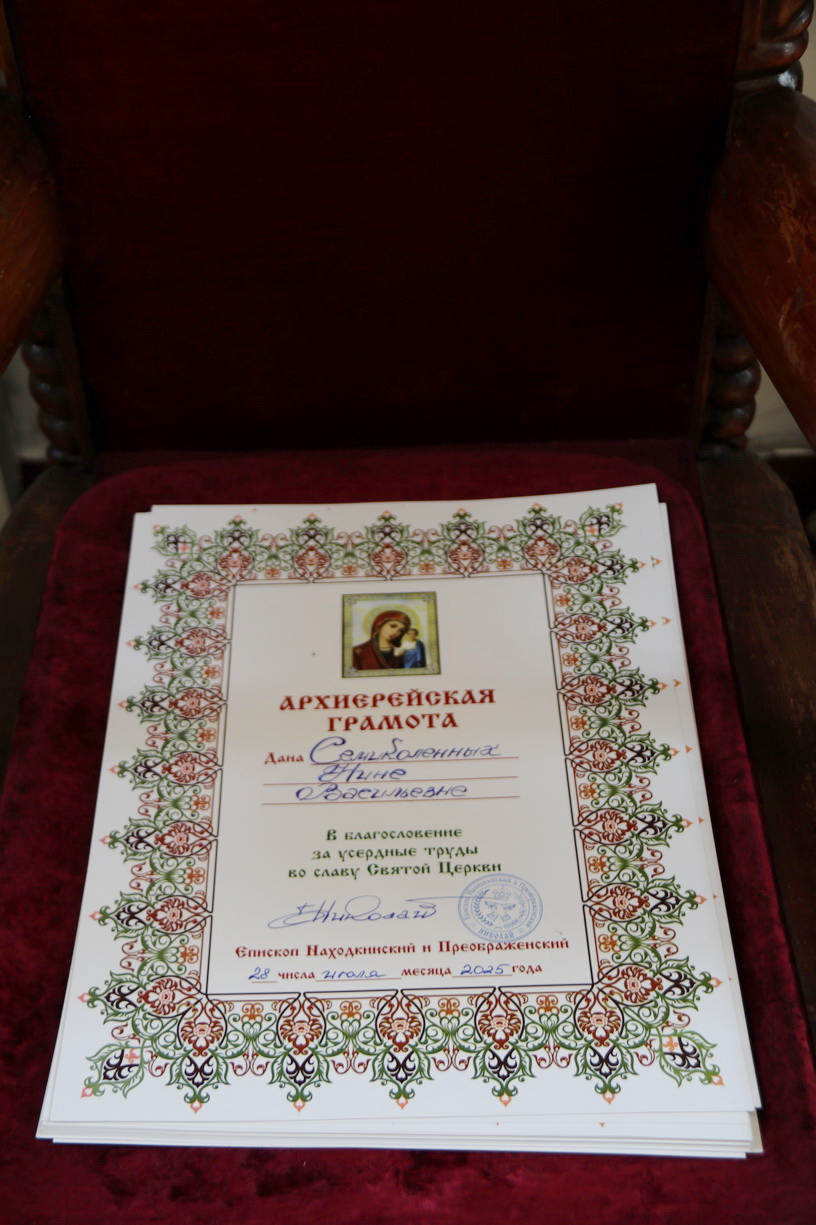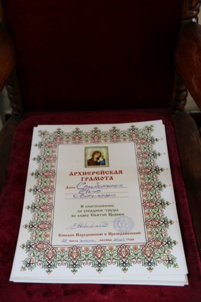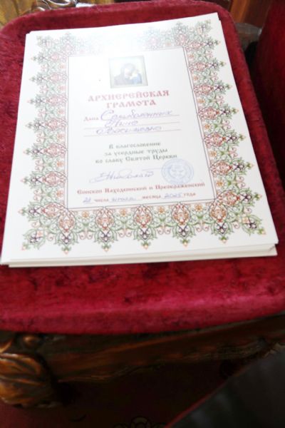 В благословение за усердные труды,и к 30-ти летию образованию Свято-Владимиского храма Владыка вручил архиерейские грамоты прихожанам, которые многие годы потрудились и участвовали в благоустойстве и становлении прихода Свято-Владимирского п. Ливадия.
