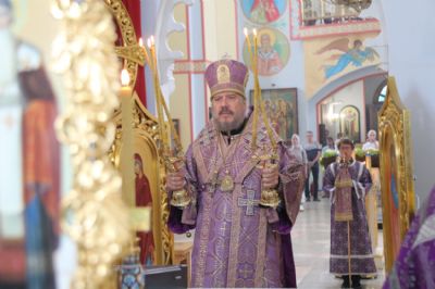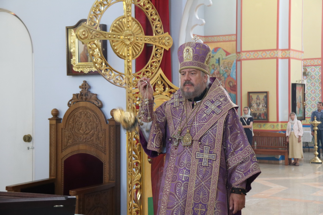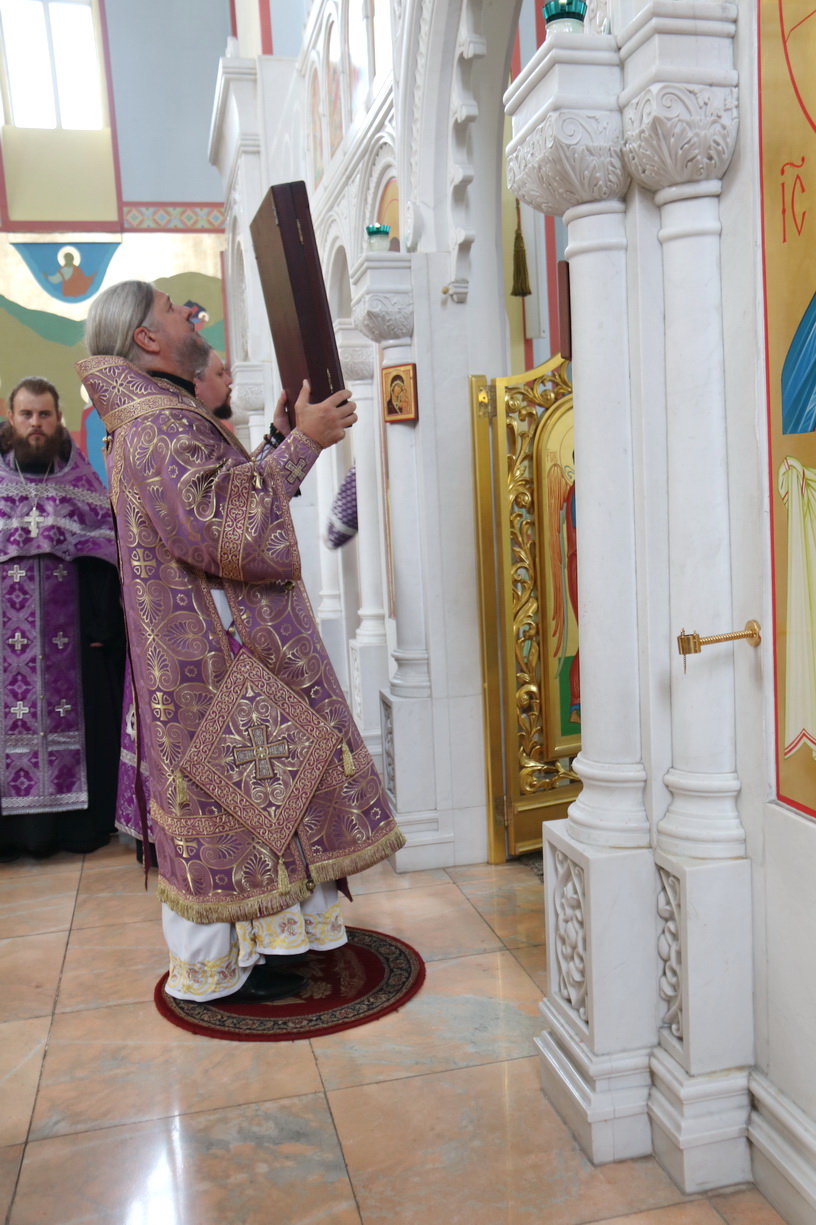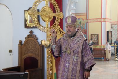 В канун Происхождения Честны?х Древ Животворящего Креста Господня епископ Находкинский и Преображенский Николай совершил вечернее богослужение в Казанском соборе г. Находки