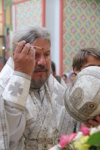 На вечерне был совершен чин литии с освящением хлебов. После чтения Святого Евангелия епископ Николай помазал верующих освященным елеем.