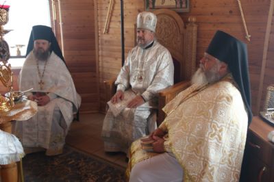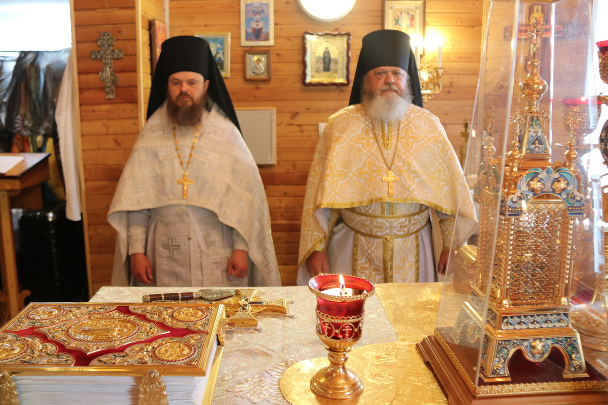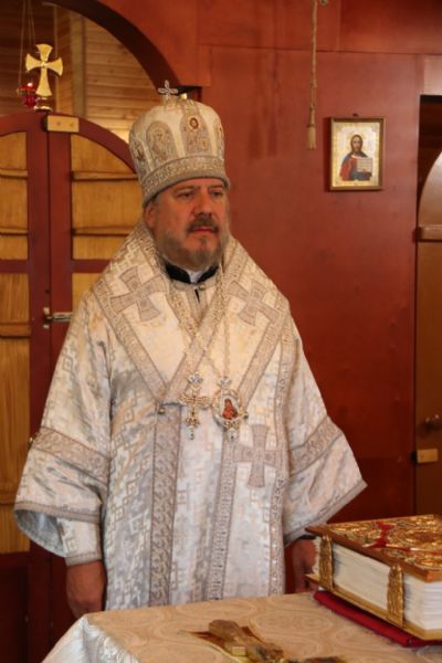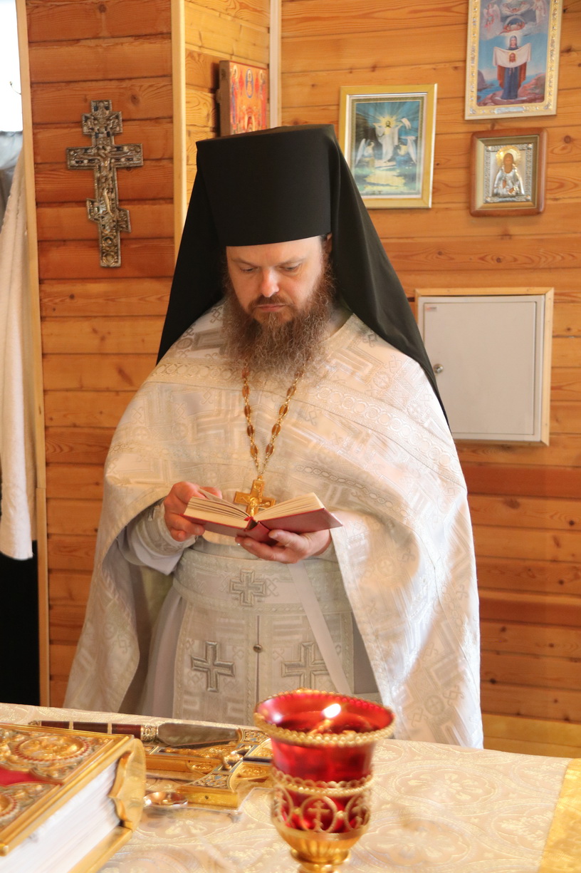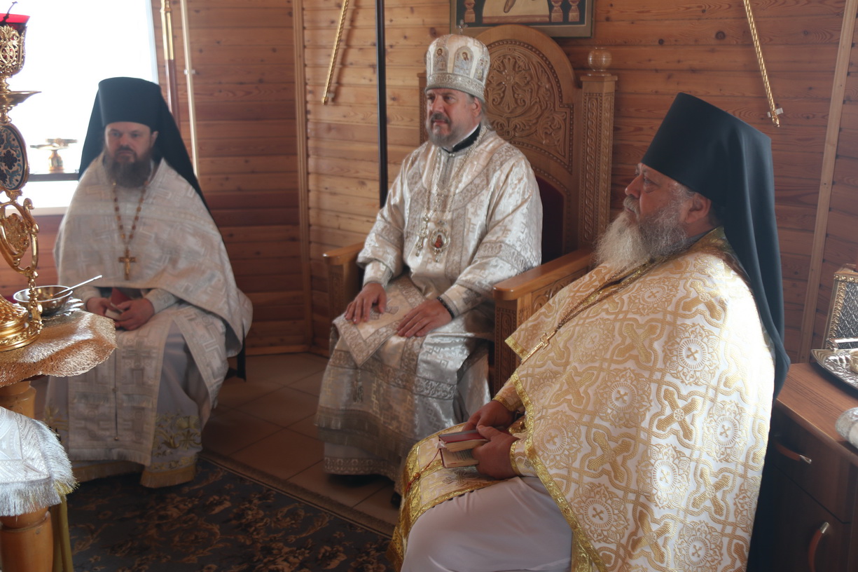 Его Преосвященству сослужили: иеромонах Гавриил (Гаврик), настоятель Свято-Преображенского храма пгт. Преображение; иеромонах Августин (Глазунов), настоятель храма в честь прп. Серафима Саровского п. Лазо; иерей Андрей Калнин, благочинный Казанского собора г. Находки.