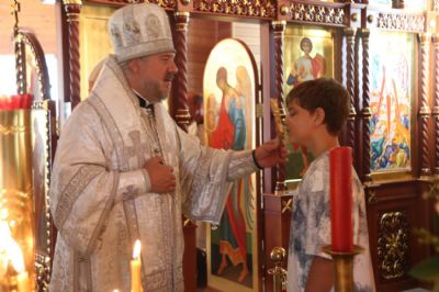 По заамвонной молитве епископ Николай, по традиции, совершил чин освящения плодов нового урожая, после чего обратился к верующим с проповедью, посвященной духовному значению праздника Преображения Господня.