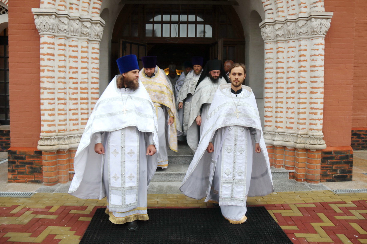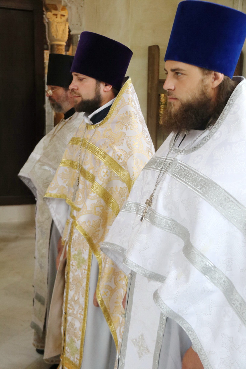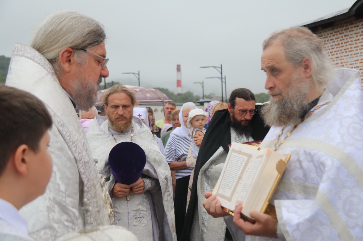 Ему сослужили: протоиерей Андрей Гречишников, настоятель храма Успения Божией Матери с. Владимиро-Александровское; игумен Варнава (Литвин), настоятель храма прп. Сергия Радонежского о. Путятин; иерей Иоанн Капитанюк, настоятель Свято-Рождественского храма г. Находки; иерей Андрей Калнин, благочинный Казанского Кафедарального собора г. Находки; иеромонах Ермоген (Крещенко), иерей Иоанн Гречишников и иерей Илия Гречишников - клирики Казанского собора г. Находки.