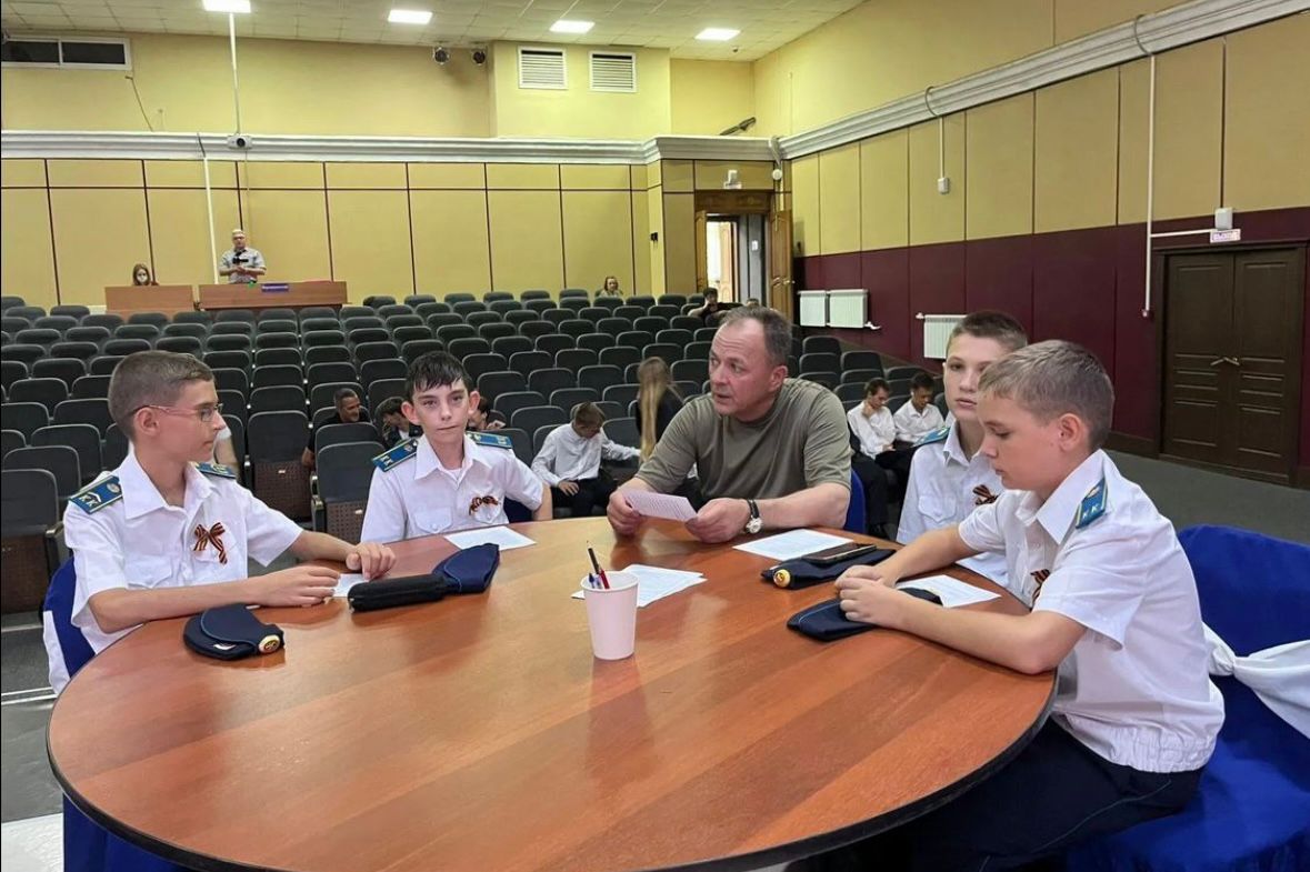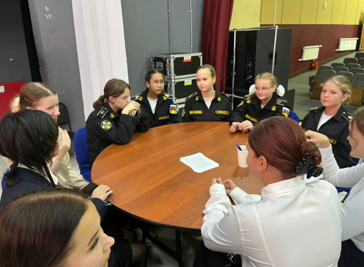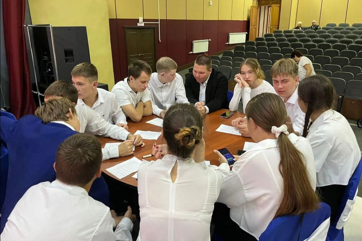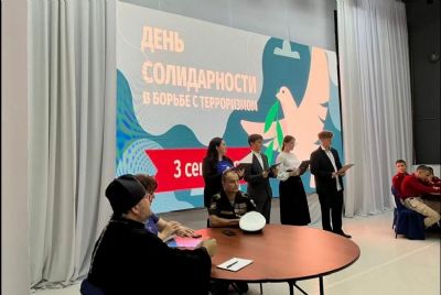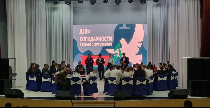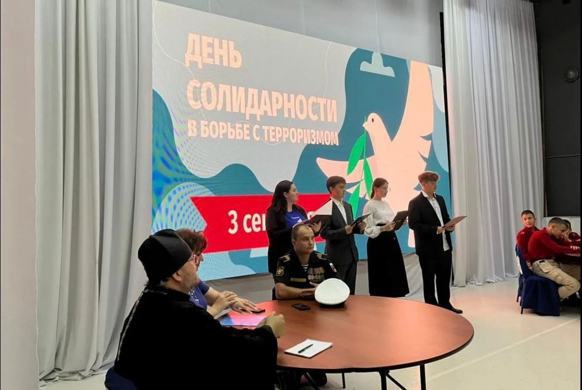 В День солидарности в борьбе с терроризмом в Центре культуры и искусства «Спутник» г. Фокино прошел круглый стол на тему "Молодежь за культуру мира—против терроризма!"?В работе круглого стола приняли участие специалисты местного отделения и активисты Движение Первых,кадетский класс МЧС, Юнармейцы, Макаровцы, а также воспитанники православного военно-патриотического класса «СПАС». Приглашенными гостями мероприятия стали заместитель главы администрации Рабцун Елена Семеновна, участник специальной военной операции Скоробогатов Алексей Сергеевич и настоятель храма Святого апостола Андрея Первозванного г. Фокино иерей Роман Капитанюк.
