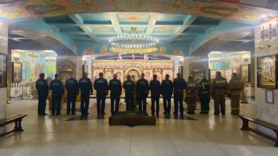 В храме преподобного Сергия Радонежского Казанского Кафедрального собора города Находки прошел молебен для сотрудников Федеральной Противопожарной службы по Приморскому краю ГО МЧС, который совершил клирик собора иерей Виталий Шаркеев.