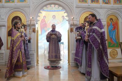 Его Преосвященству сослужили: иерей Андрей Калнин; иерей Виталий Шаркеев; иерей Андрей Попов; иерей Иоанн Гречишников иерей Илия Гречишников.