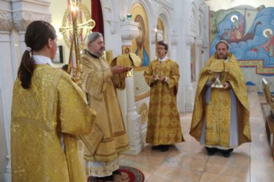 Его Преосвященству сослужили: иерей Андрей Калнин; иерей Виталий Шаркеев; иерей Иоанн Гречишников.
