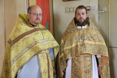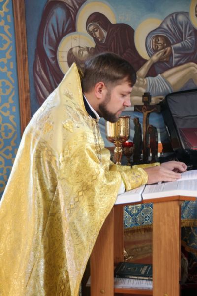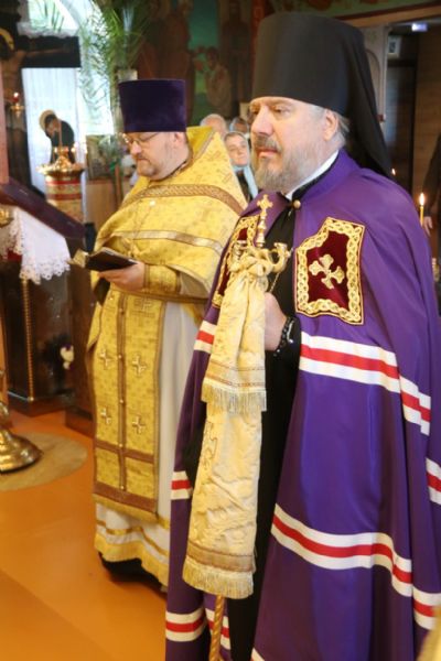 Его Преосвященству сослужили: иерей Роман Капитанюк, настоятель храма святого апостола Андрея Первозванного ЗАТО г. Фокино, благочинный Западного благочиния Находкинской Епархии; иерей Иоанн Капитанюк, настоятель храма Рождества Христова г. Находки; иерей Иоанн Гречишников, клирик Казанского Кафедрального собора г. Находки.
