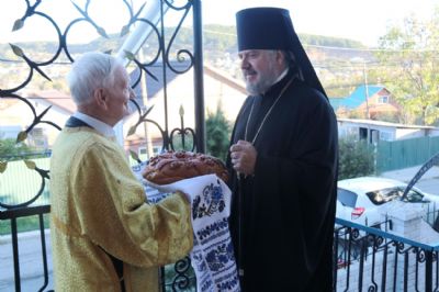 В ответном слове иерей Иоанн поблагодарил Владыку за совместную молитву и преподнес ему букет белых роз.