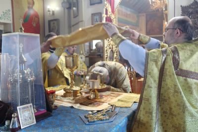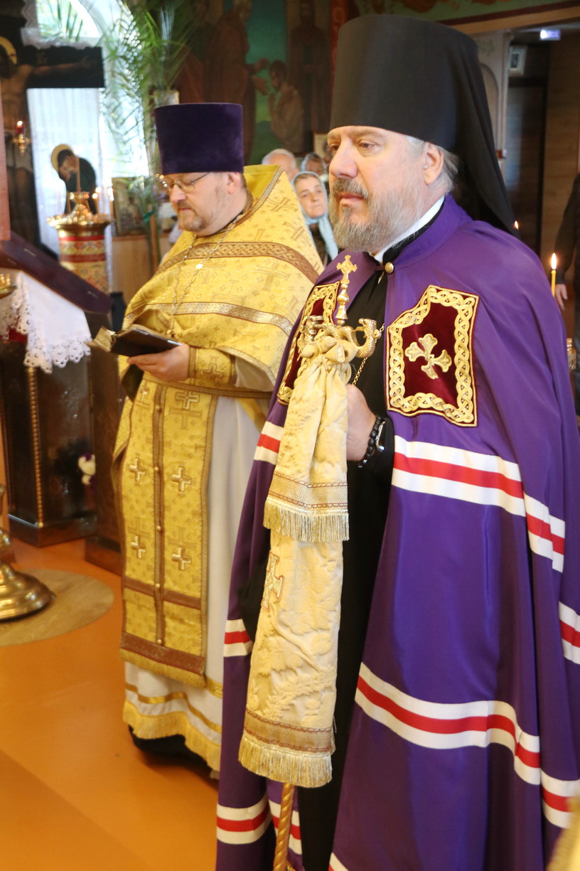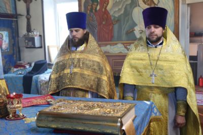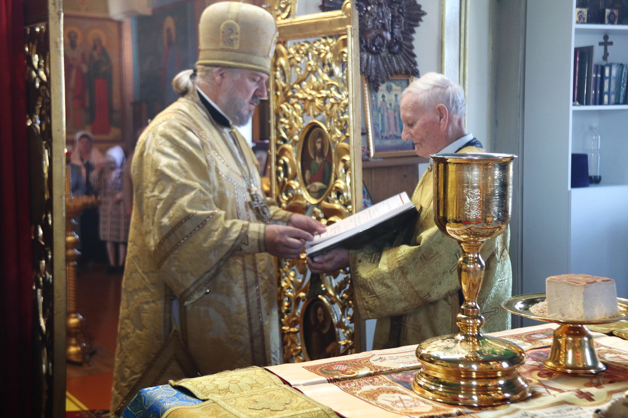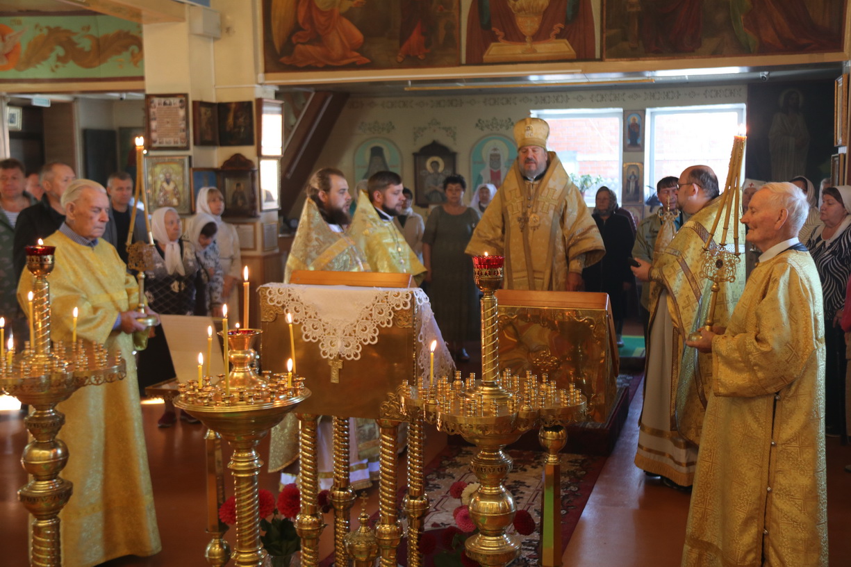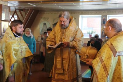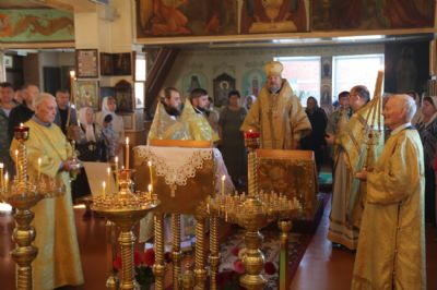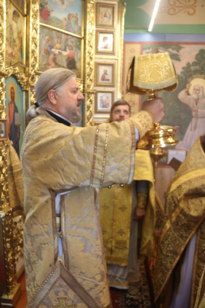 По заамвонной молитве епископ Николай возглавил праздничный моебен и славление святым, после чего обратился к прихожанам храма с архиерейским словом, в котором напомнил житие и апостольские труды святого Иоанна Богослова и святейшего Патриарха Тихона.