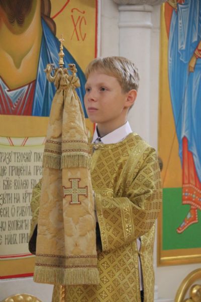 Его Преосвященству сослужили: иерей Андрей Попов; иерей Иоанн Гречишников и Илия Гречишников